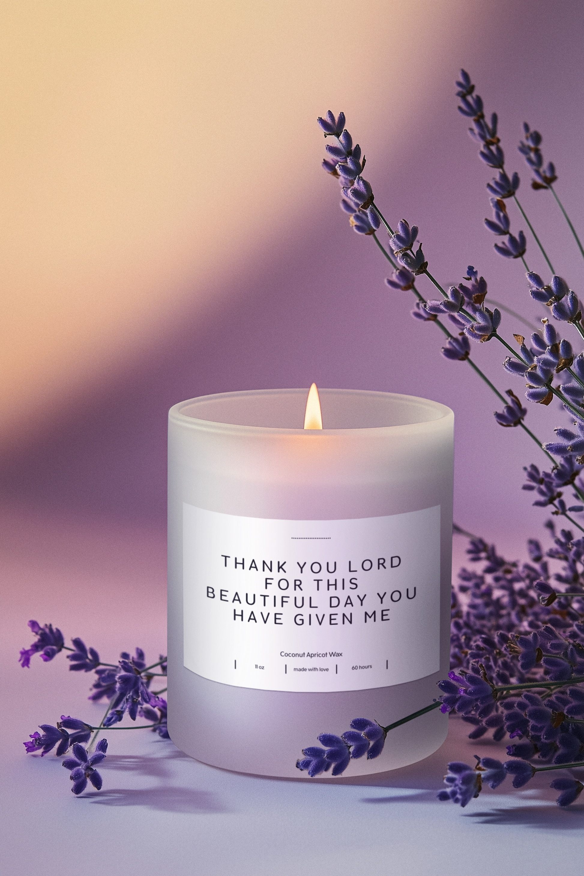 Thank you Lord Beautiful Day 11oz Frosted Glass Candle